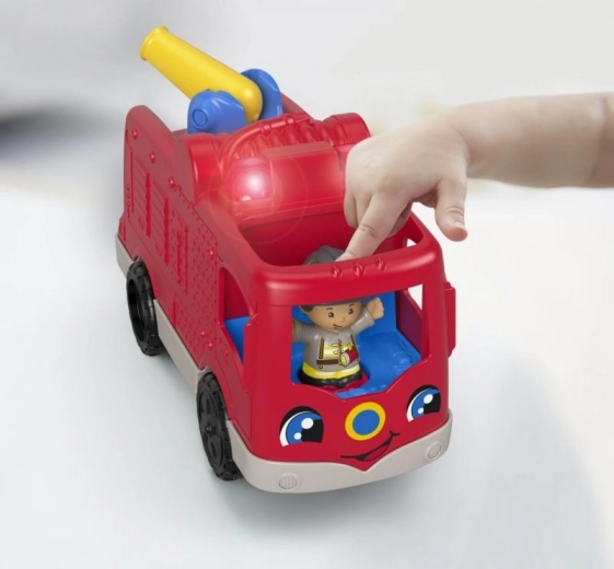 LITTLE PEOPLE brandbilen er et fantastisk interaktivt legetøj til små helte. Takket være det lette greb og de to søde figurer kan børn genopføre deres egne redningshistorier og lære om teamsamarbejde og at hjælpe andre.