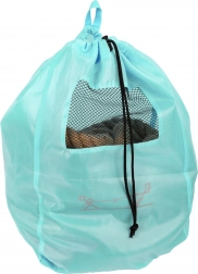 Den turkise pose med netvindue giver nem transport og opbevaring af rebet efter leg.