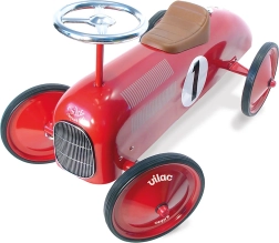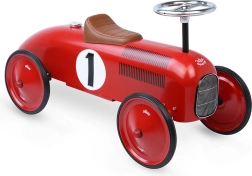 Den røde VILAC Vintage løber skiller sig ud med tidløst retrodesign og en holdbar metalkonstruktion. Børn lærer nemt balance, koordination og deres første kørefærdigheder takket være rattet, som virkelig drejer forhjulene. De gummibelagte hjul giver stille og jævn kørsel på hårde underlag, hvilket gør den ideel til både lejlighed og terrasse.