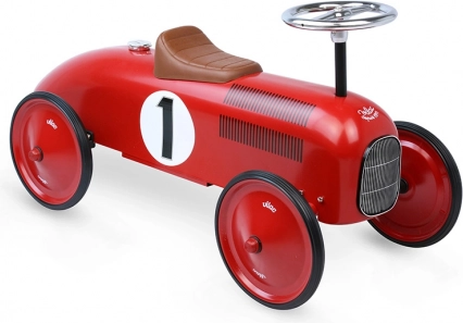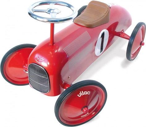 Stilfuld børneløber i vintage racerbilsdesign fra VILAC, som glæder små kørere fra 18 måneder. Den har fuldt metalkarrosseri, støjsvage gummibelagte hjul, funktionelt styring af forhjulene og en behagelig plastiksadel. Stabil konstruktion og bæreevne på 20 kg garanterer sikker leg både inde og ude.
