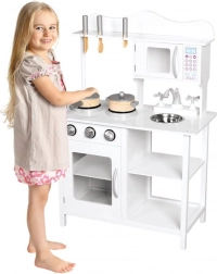 Køkkenet indeholder vask, komfur og mikrobølgeovn til fuldendt leg.