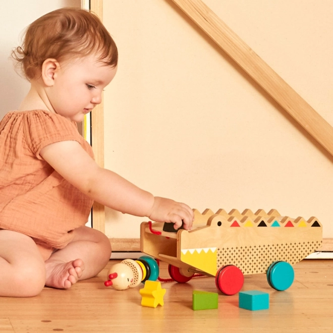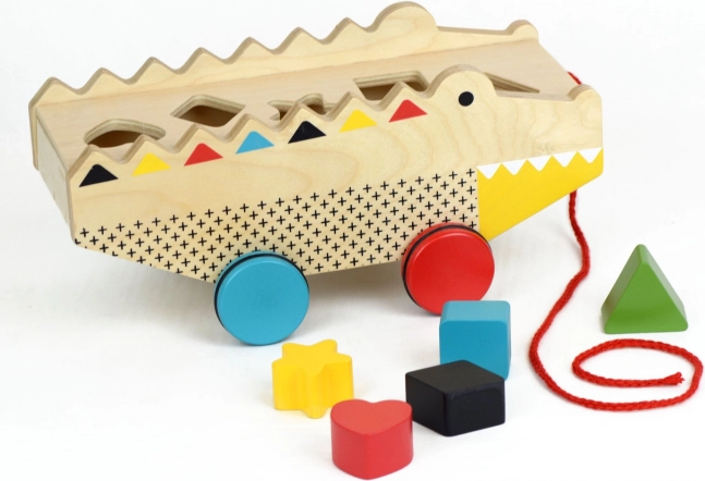 Denne træ-aligator med puttekasse er det ideelle legetøj for små opdagere fra 18 måneder. De fem robuste former kan nemt puttes i de matchende huller og udvikler hånd–øje-koordination og logisk tænkning. Takket være den praktiske træksnor og de gummibelagte hjul får børn masser af aktiv sjov derhjemme og på farten.