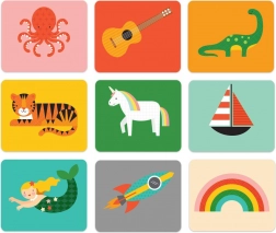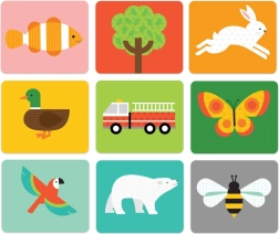 Farverige og tydelige billeder af dyr, genstande og transportmidler gør det lettere at gætte – også for yngre spillere.
