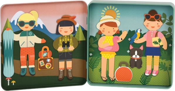 Denne kompakte magnetbog fra PETIT COLLAGE er den perfekte ledsager i bil, tog og på ferie. Inde i dåsen finder du to illustrerede scener og et sæt magnetiske dele, så børn nemt kan skabe sjove figurer og historier. Legen understøtter kreativitet, koncentration og fantasi.