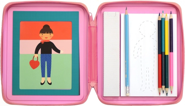 Petit Collage mode designer sæt fremmer børn kreativitet og fantasi. Det er ideelt til rejser eller derhjemme.