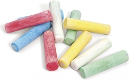 Sæt med 10 store farvede kridt i en robust kartonæske, ideel til tegning på fortov, i haven og på skolegården. Kridtene er lette at holde, har intense farver og kan nemt tørres af med vand.