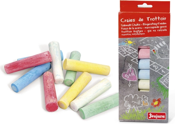 Oplev glæden ved at tegne med de store farvekridt fra JEUJURA. Takket være den større diameter ligger kridtene godt i hånden selv på mindre børn, farver jævnt og efterlader en intens streg. Perfekte til udendørs leg, tegning af hinkeruder og kreativ udfoldelse.