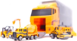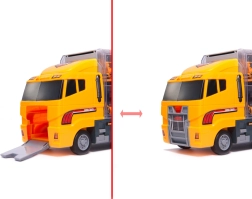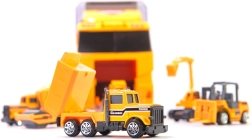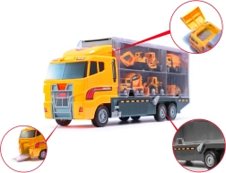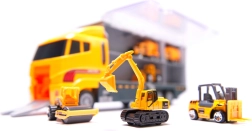 Denne 2-i-1 transporter og legesæt kombinerer sjov med praktisk opbevaring. Trækkeren med transparente sider rummer seks detaljerede byggemaskiner og fungerer samtidig som en kompakt organizer. Børnene får realistisk byggeleg takket være bevægelige dele og den smarte udkørselsrampe med knap.