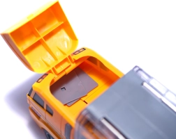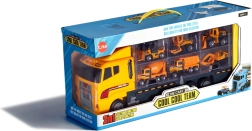 Trækkeren har gennemsigtigt låg og rum til alle 6 biler. Børnene har maskinerne lige ved hånden, og sættet er nemt at rydde op og tage med.