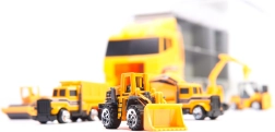 Gravko, læsser, betonblander, bulldozer og andre mini-maskiner med bevægelige dele inspirerer til realistisk byggeleg.