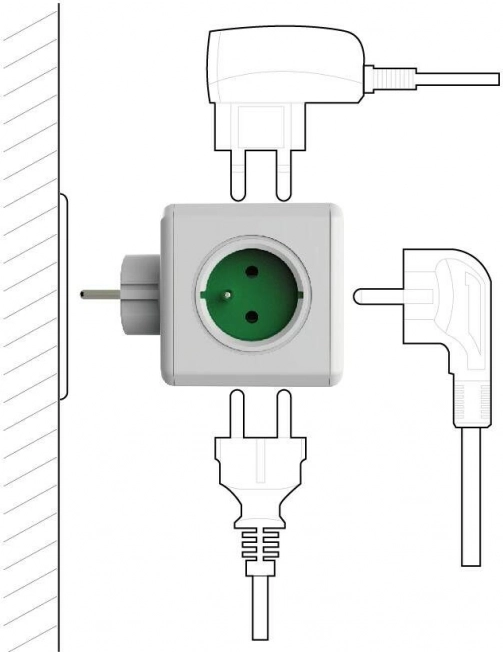 PowerCube Original er en smart og kompakt løsning, når du mangler stikkontakter. Dets strategisk placerede udtag forhindrer, at store strømforsyninger overlapper og blokerer andre pladser. Fordeleren passer perfekt i køkkenet til samtidig tilslutning af kaffemaskine, elkedel, blender eller brødrister, såvel som i stuen bag TV’et eller på kontoret.