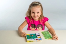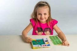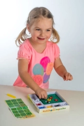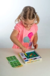 Denne mosaik er et godt valg til det første kreative arbejde. Børn bruger pincetten til at lægge farvede kugler i pladen og skaber enkle og fantasifulde motiver. Aktiviteten støtter tålmodighed, øje–hånd-koordination og udvikling af finmotorik.