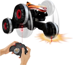 Drøn over græs, sten og fortov med RC‑monstertrucken HOT WHEELS Tiger Shark i skala 1:15. Takket være HW Terrain Stomp-teknologien og de enorme dæk klarer den krævende terræn, når op til 9 km/t, kører på 2,4 GHz uden interferens og giver op til 25 minutters kørsel pr. USB-opladning med en rækkevidde på 30 m.