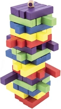 Klassisk trætårn er ideelt for alle aldersgrupper. Med 60 farverige brikker kan du bruge timer på sjov både indendørs og udendørs.
