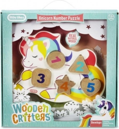 Puslespillet i form af en enhjørning hjælper med at udvikle børns evner i at genkende former og tal.