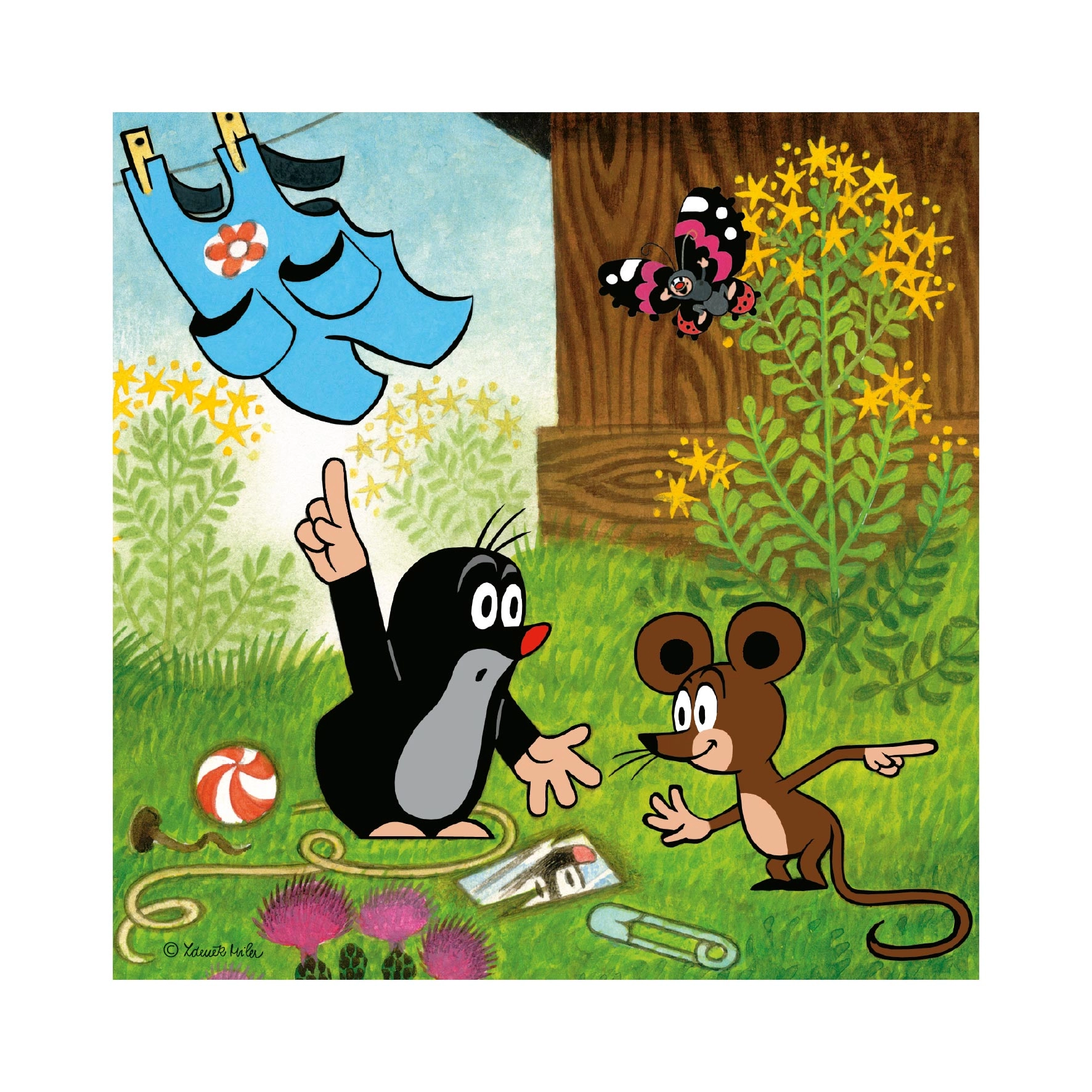 I pakken finder du 3 separate puslespil med 55 brikker hver og originale illustrationer af Zdeněk Miler. Ideelt til gradvis lægning og opdagelse af historien.