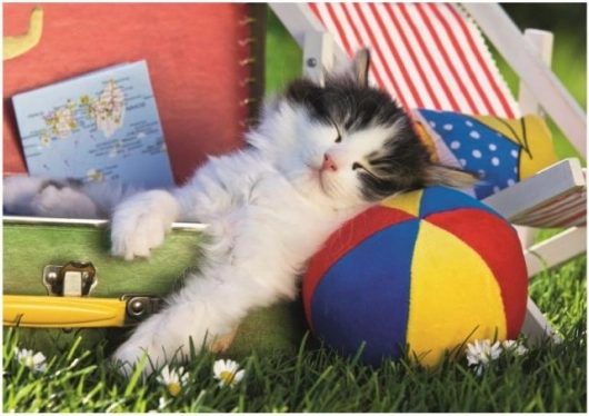 Det farverige billede af en sovende killing med en bold motiverer børn til at lægge puslespil og pynter på ethvert børneværelse.