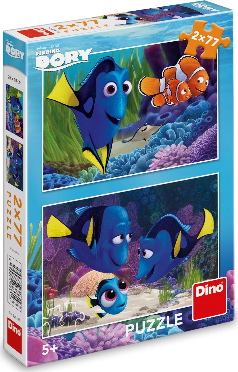 Udforsk undervandsverdenen med puslespilssættet Dino Findes Dory 2×77. To forskellige motiver med filmens helte glæder alle små fans og giver mange timers kreativ underholdning. Brikkerne passer præcist, er lette at lægge, og det robuste karton tåler hyppig brug.