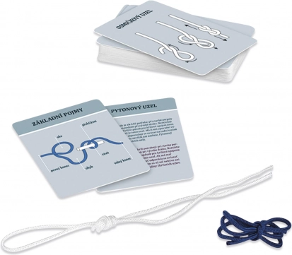 - 53 kort med detaljerede, tegnede vejledninger i knudebinding, som viser dig, hvordan du korrekt laver forskellige typer knuder.