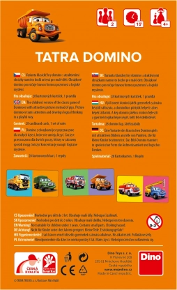 Domino DINO TATRA introducerer børn til de legendariske tjekkiske lastbiler og specialkøretøjer. Når de parrer billeder, træner de legende deres koncentration, iagttagelsesevne og logiske tænkning. Takket være den kvalitetsmæssige karton er spillet let, kompakt og velegnet til rejser, så det underholder både hjemme og på ture.