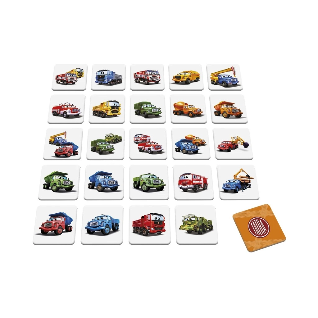 Det populære vendespil med Tatra-licens glæder både små og store fans af tjekkiske lastbiler. De holdbare kort af sundhedsmæssigt ufarlig karton ligger godt i hånden, er nemme at vende og er klar til spil lige efter udpakning – helt uden udklipning. En ideel familieaktivitet til at træne hukommelse, koncentration og skarpt blik.