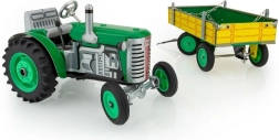 Denne unikke traktormodel drives af en fjederdrift optrukket med nøgle, der tilføjer en autentisk dimension til legen. Den funktionelle gearkasse med tre fremadgående hastigheder og en bakgear giver børnene mulighed for at manipulere modellen realistisk. De kan styre med rattet og anvende håndbremsen til stop. Med en skala på 1:25 gengiver denne model præcis detaljerne fra en ægte traktor, hvilket gør den ikke alene til et fantastisk legetøj, men også til et samleobjekt.