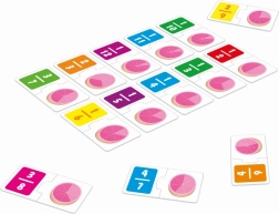 Lær med leg – Legende brøker er et ideelt redskab til den første introduktion til brøker. Børn forbinder to halvdele af kort – det ene med en numerisk brøk og det andet med en billedlig fremstilling. Takket være pusleformen kan de straks kontrollere, om parret passer, og de lærer dermed gennem leg uden stress.