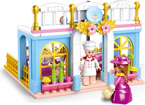 Det søde byggesæt af et historisk bageri fra serien Sluban Girl's Dream Village bringer 199 klodser, 2 figurer med bevægelige dele og masser af tilbehør til at skabe historier fra konditoriet. Klodserne er lavet af kvalitetsABS-plast, har mellem sværhedsgrad og er kompatible med LEGO, Cobi og Mega Bloks – ideelt til at udvikle kreativiteten hos børn fra 6 år.