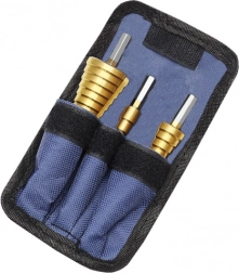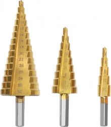 Trinbor er ideelle til hurtigt at lave forskellige diametre med ét værktøj. Takket være de flere trin på hvert bor kan du nemt udvide hullet til den ønskede størrelse uden at skifte værktøj. Titaniumbelægningen mindsker friktion, øger levetiden og forbedrer snitkvaliteten.
