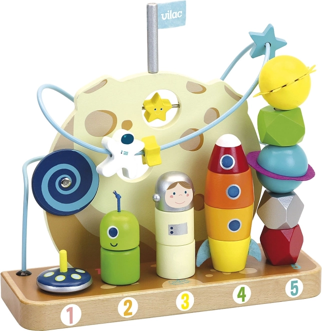 Dette stjernespækkede trælegetøj fra Vilac tager børn med til en intergalaktisk verden, hvor de kan stable planeter, tælle og skubbe stjerner langs en tråd. De gennemtænkte elementer understøtter udvikling af finmotorik, logisk tænkning og farveopfattelse.