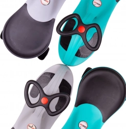 - Bevægelse uden pedaler og batterier – kørsel ved at dreje rattet fremad og baglæns.