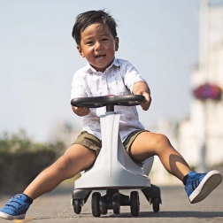 Nyd en sjov tur med Didicar i grå – et unikt selvkørende køretøj uden pedaler og batterier. Både børn og voksne får Didicar i gang blot ved at dreje rattet i cirkler, hvilket naturligt udvikler koordination, balance og kondition. Den robuste konstruktion i kvalitetsplast og rustfrit stål, bæreevne op til 120 kg og jævn kørsel på faste underlag sikrer lang levetid og sikker sjov.