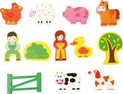 Oplev bondegårdens magi i et praktisk format. Rejsekufferten foldes ud til en overskuelig spilleplade, hvor børn kan vække historier til live med 12 træfigurer af bondegårdsdyr. Takket være massivt træ er figurerne holdbare, ligger godt i hånden og frister med livlige farver.