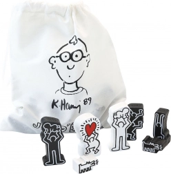 Der medfølger en tekstilpose med KEITH HARING-motiv til sikker og nem transport samt opbevaring af brikkerne.