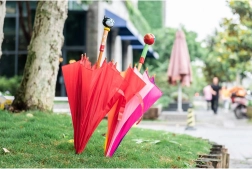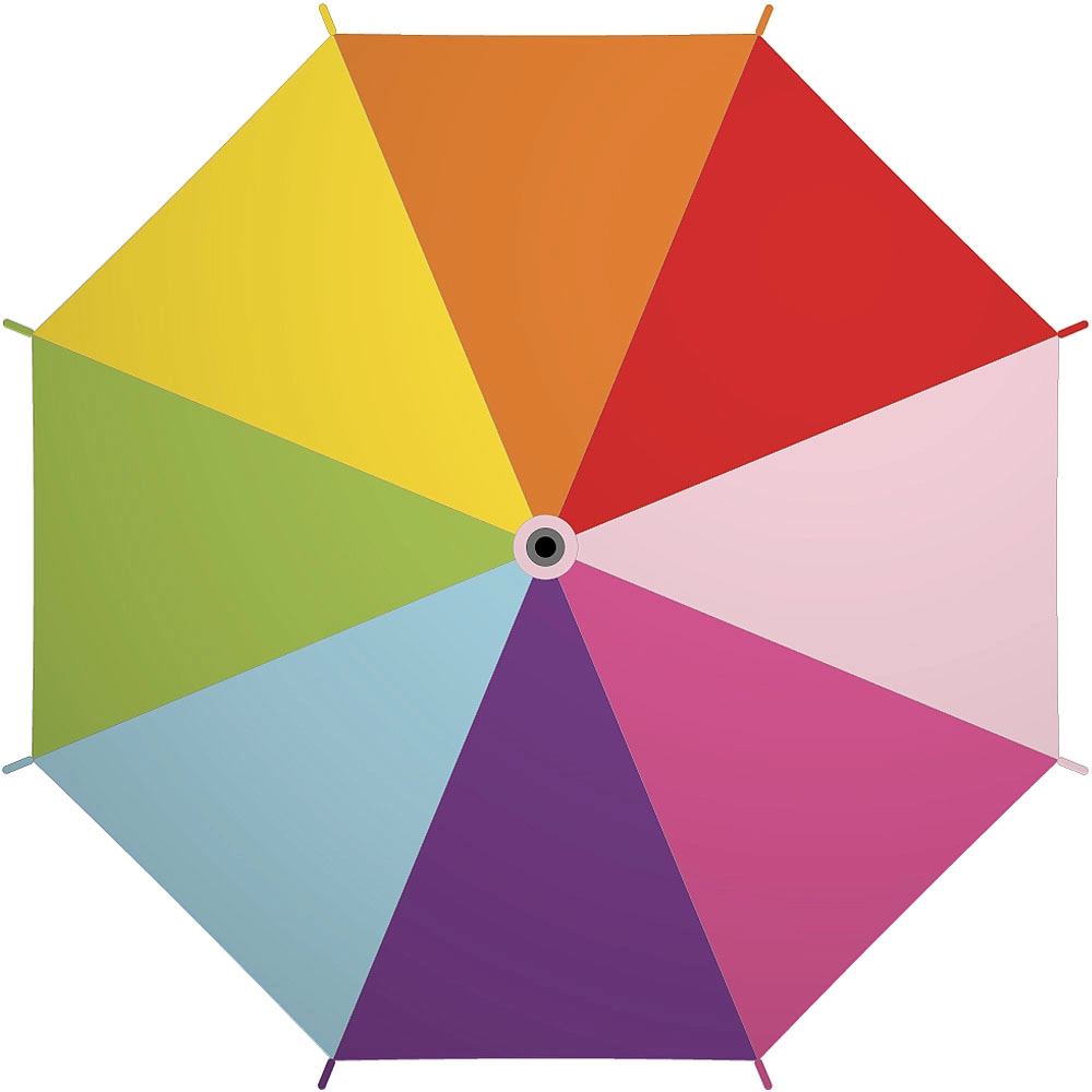 Den glade farvekombination øger synligheden og gør paraplyen til et yndet tilbehør på enhver regnvejrsdag.