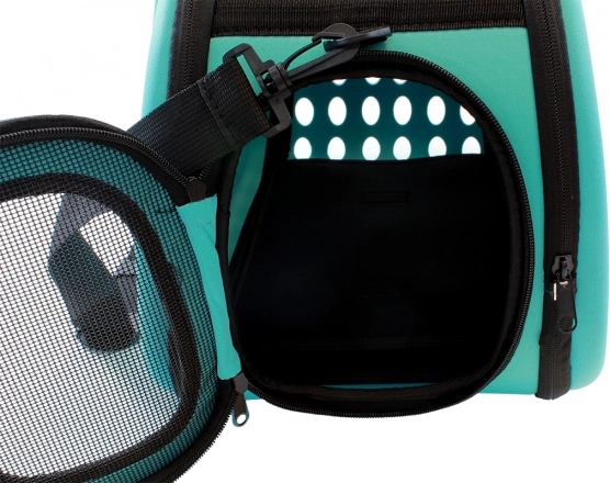 Let og solid transporter i EVA-materiale, som er nem at holde ren og ideel til rejser i bil, offentlig transport og til fods. Takket være det gennemtænkte ventilationssystem er dit kæledyr sikkert og har rigeligt med frisk luft. Dobbelt lynlås gør det hurtigt og bekvemt at åbne fra begge sider.