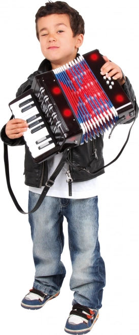 Harmonikaen er designet som legetøj til børn fra 3 år – den udvikler høresansen, koordinationen og understøtter den naturlige kærlighed til musik. Flere tangenter giver bredere muligheder for at spille enkle melodier og sjove akkompagnementer.