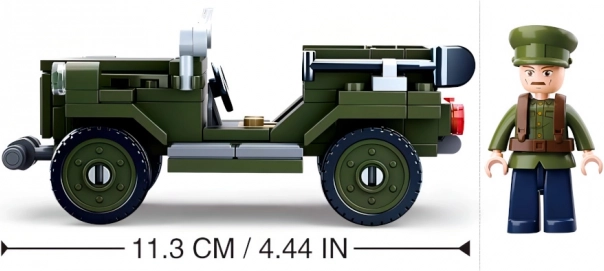 Sættet indeholder 111 dele og en figur i militær påklædning, hvilket muliggør at skabe en detaljeret og realistisk model.