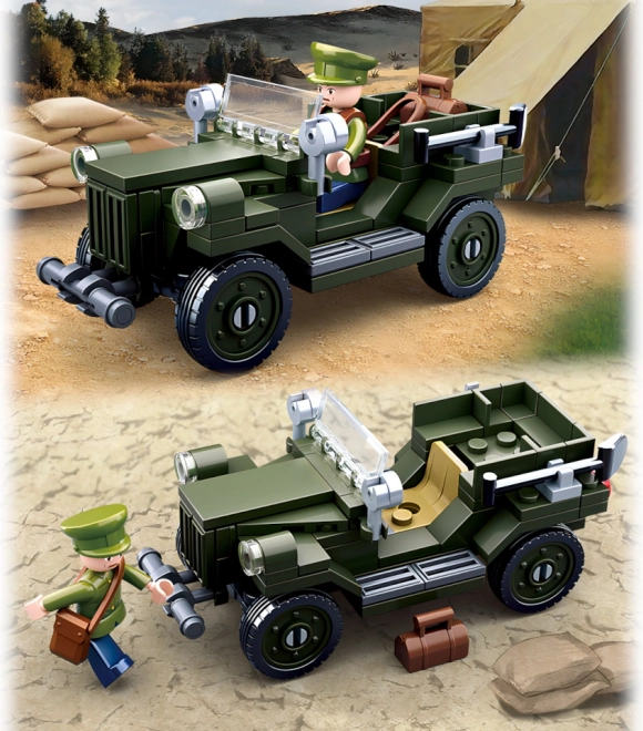 Byggesæt Sluban militær jeep GAZ 67 med 111 dele tilbyder kreativitet og leg til både børn og voksne.