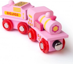 Denne klassiske lyserøde lokomotiv med tender giver børn timevis af kreativ leg. Magnetiske koblinger i begge ender muliggør nem tilslutning til andre vogne og lokomotiver. Takket være den brede kompatibilitet fungerer den perfekt med de fleste trætogbaner.