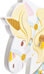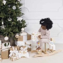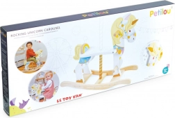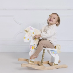 Gynge-enhjørningen LE TOY VAN fra Petilou-kollektionen er et klassisk legetøj i en moderne fortolkning. Takket være den solide trækonstruktion og gennemtænkte ergonomi understøtter den naturlig gyngen og udvikler koordination, balance og bevægelsessikkerhed. Rige farvedetaljer, gyldent horn og et venligt udtryk stimulerer fantasi og legeglæde.