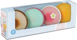 Fire træmakroner i blide farver liver enhver leg med café eller konditori op og stimulerer barnets fantasi.