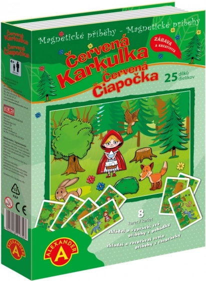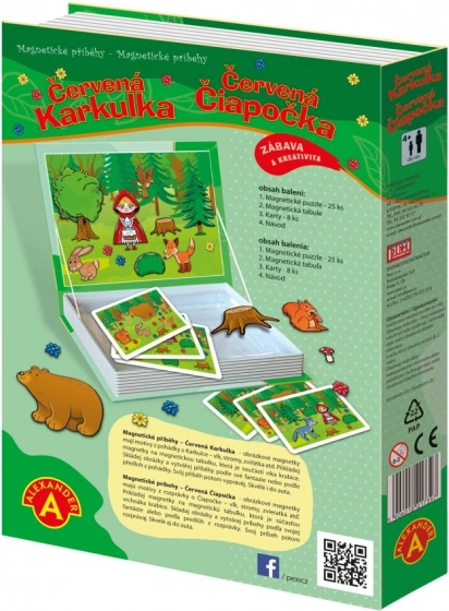 Oplev den sjove verden af magnetiske historier med temaet Rødhætte. Børn placerer billedmagneter på en magnetisk baggrund efter skabelonerne på kortene eller finder på deres egne kombinationer og historier. Spillet fungerer også som et lille magnetisk dukketeater, der naturligt udvikler fantasi og kommunikative færdigheder.