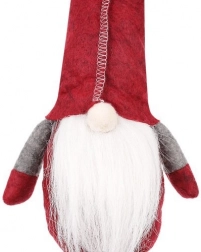 Julenissen i røde nuancer charmerer med sit legende udtryk – den høje spidse hue, det fyldige hvide skæg og de stribede ben bliver en iøjnefaldende sæsondekoration. Takket være den solide udførelse i filt og holdbar plast er den let, men stabil og klar til at pynte dit hjem hele vinteren.