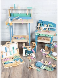 Oplev charmen ved nordisk stil med et værksted, der kombinerer blide pastelfarver, naturtræ og gennemtænkt funktionalitet. Under legen lærer børn manuelle færdigheder, udvikler finmotorik og tålmodighed. Takket være de kompakte mål passer værkstedet ind i enhver indretning.