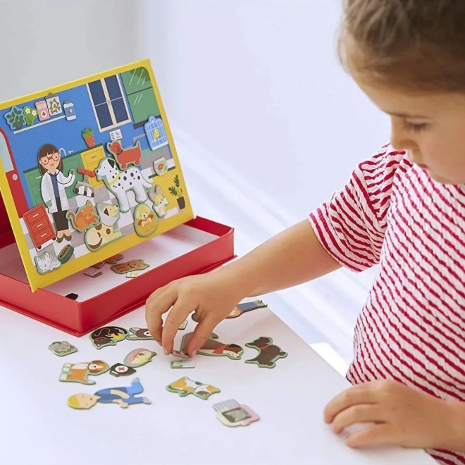 Leder du efter det perfekte legetøj til små dyreelskere? Magnetisk spil: Dyrlægeklinik er det ideelle valg! Dette spil indeholder to magnetiske tavler og 50 magnetiske brikker, som gør det muligt for børn at skabe deres egne historier og scener. Den praktiske, sammenklappelige æske gør det nemt at opbevare og hurtigt rydde brikkerne væk.