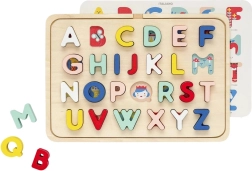 Dette smarte og legende sæt forbinder læring og sjov. Hvert bogstav afslører, når det løftes, en tematisk illustration, der svarer til bogstavet – børnene styrker dermed kendskabet til bogstaver og opdager samtidig ord på engelsk, fransk, italiensk og tysk. Brikkerne har behageligt afrundede kanter for sikker håndtering med små fingre.