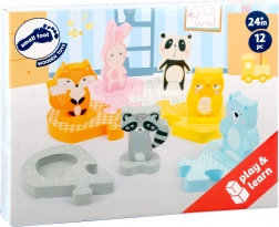 Moderne pastelfarver og attraktive dyremotiver indbyder til leg og støtter genkendelse af farver og former.