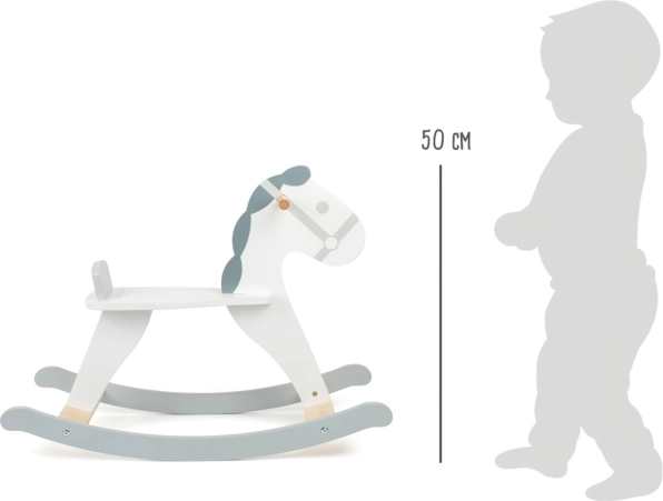 Den elegante gyngenhest i ren skandi-stil bliver både en favoritleg og et stilfuldt element på børneværelset. Takket være den robuste konstruktion af krydsfiner og massivt træ er den stabil, holdbar og sikker til daglig leg.