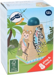 Dette kvalitets stabeltårn med Jungle-motiv har fem farvede dele og en sikker midterpind, som gør det nemt for børn at stable og opdage former og farver. De dyreinspirerede illustrationer fanger interessen med det samme og støtter koncentration og legende læring.